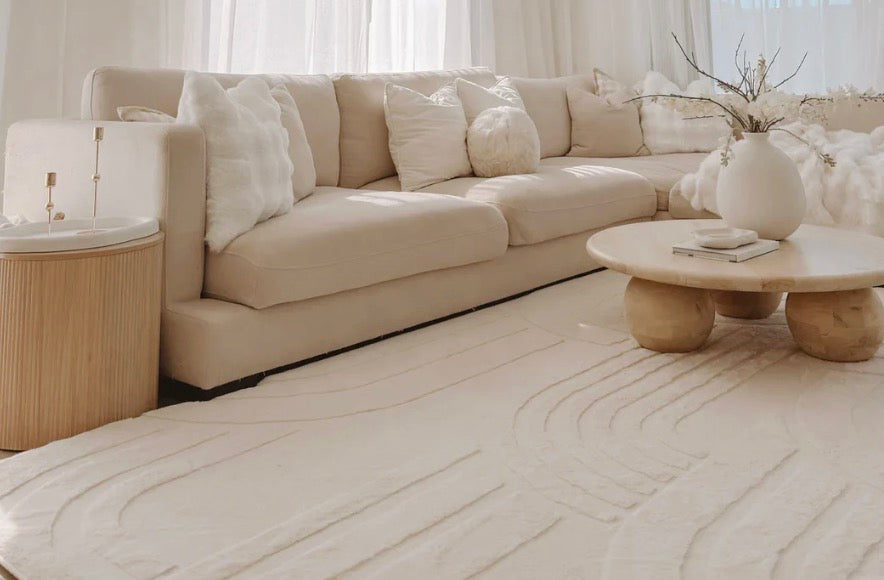 A soft, neutral cream floor mat perfect for modern living rooms, nurseries, and bedrooms. Light, warm, and easy to style with any interior.
